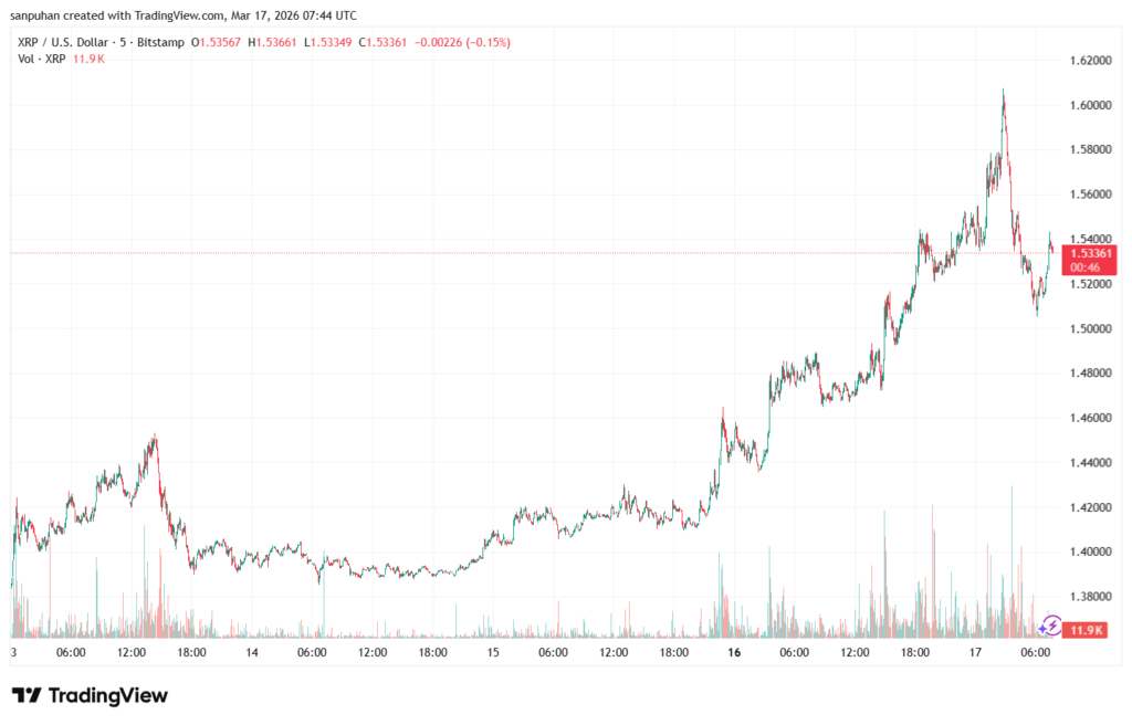 XRPは前日に6%以上上昇し、現在は1.54ドル付近で推移している。